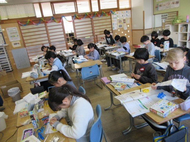 理科の時間です。電気の通り道の学習をします。セットに入っている乾電池ボックスや導線をつなげて実験の準備をしていました。