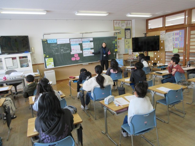 SCの先生から「お互いをみとめ合おう」というテーマにお話していただいています。みんな好きなものが違うこと、みんな違ってみんないいこと、思いやりのある言葉について考えていました。