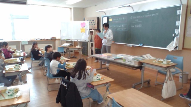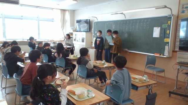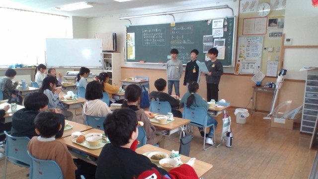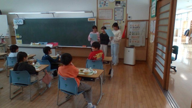 今日の給食の時間に、1~4年生の大成っ子にも協力を仰ごうと、チラシの配付にいきました。
