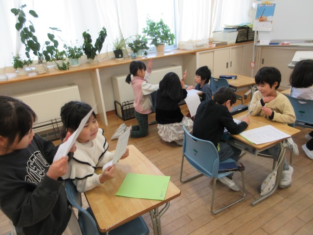 生活科「もうすぐ2年生~できることがふえたよ~」の発表に向けて、練習をしていました。7日の学習参観に行います。