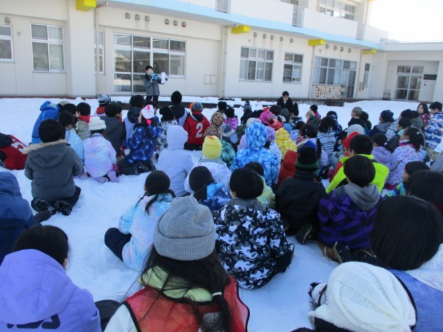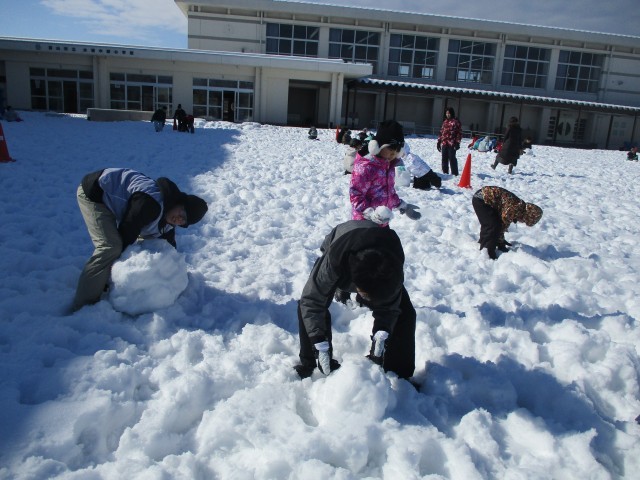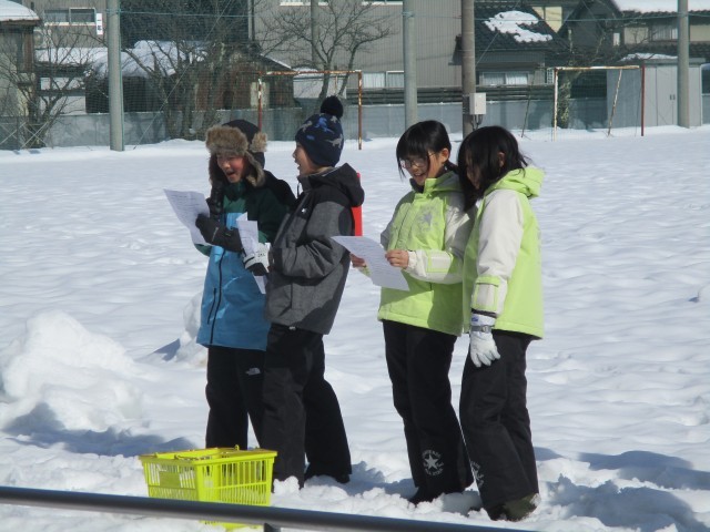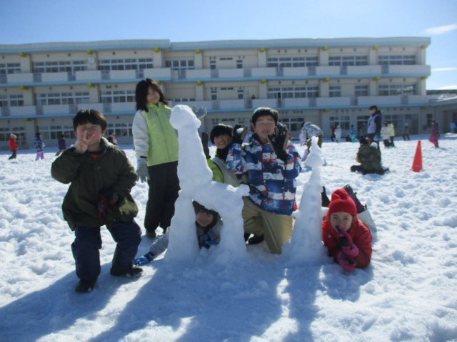 快晴のもと、全校児童で雪遊びを行いました。トレジャーハント(宝探し)とメイキング スノーマン(雪だるま・雪像づくり)を全校みんなで楽しみました!