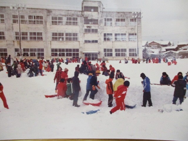 引っ越しのため、古いアルバム等を整理していたら昔の雪のカーニバルの写真が出てきました。昭和55年ですので、45年前となります。旧校舎、雪の多さ、児童数の多さ、スキーウェア等から歴史が感じられます。2枚目以降の写真は昨日(令和)の雪のカーニバルです。比較してみるとおもしろいですね。