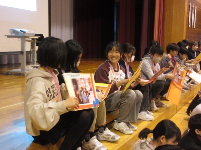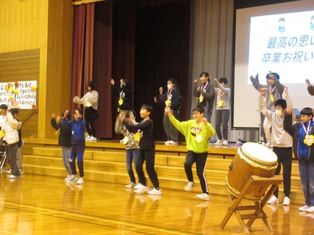 今日は、在校生のみなさんが6年生のために卒業を祝う会を開いてくれました。6年生の子供たちは、どの学年の出し物も嬉しそうな表情で見ていました。もらったメッセージカードを大事そうにしていたのが印象的でした。1~5年生のみなさん、すてきな祝う会をありがとうございました。