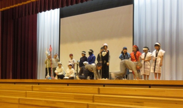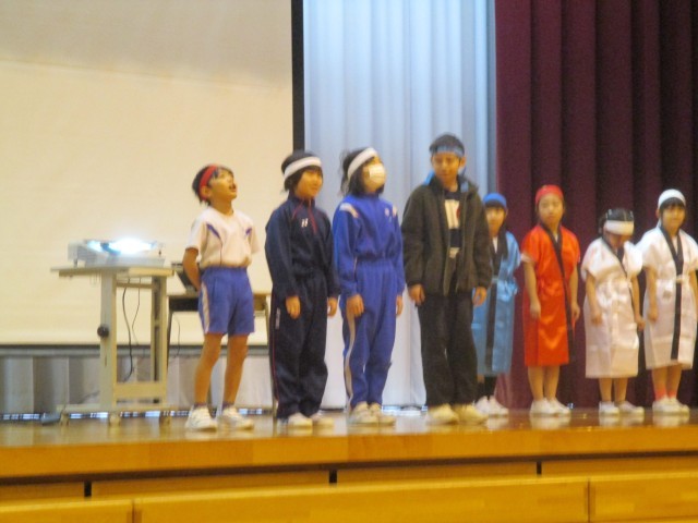 今まで最高学年としてお手本となってくれた6年生の姿から心に残っている場面を劇にしました。