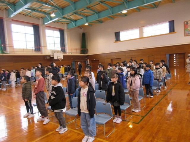 卒業式に向けて在校生で歌や呼びかけの練習をしました。先週から閉校式と卒業式の練習を並行して行っていますが、子供たちはその都度切り替えて練習に参加しています。