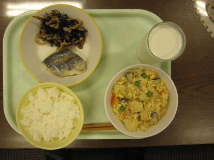 今日の献立は、ごはん、牛乳、さわらの塩焼き、ひじきの炒め煮、厚揚げの錦とじ です。