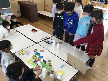1年生の「秋いっぱいおもちゃまつり」に参加しました。秋のものでできたおもちゃに楽しんだり、すてきな景品を貰ったりしてすてきな思い出ができました。