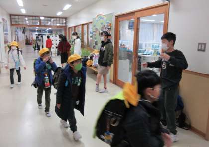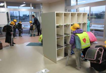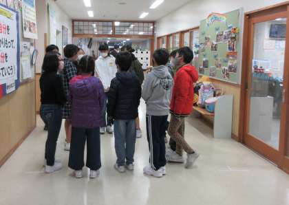 今朝の登校から、全校児童玄関から学校に入りました。子供たちは、混み合わないように上手に入ってきました。また、運営委員会の子供たちは、児童玄関の移動に合わせて、場所を変えて、あいさつ運動を行いました。最後に運営委員会の子供たちがお昼の校内放送の打合せをしていました。