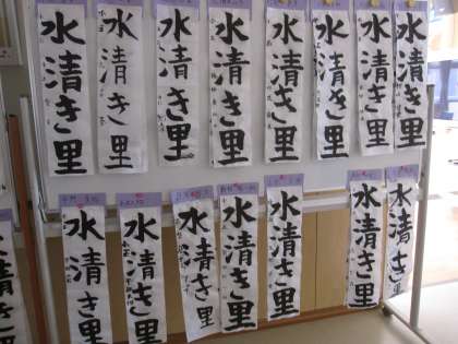 <総合:米について調べました> <書き初め> 「水清き里」:水橋のイメージにぴったり!