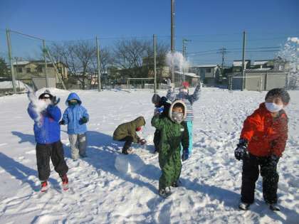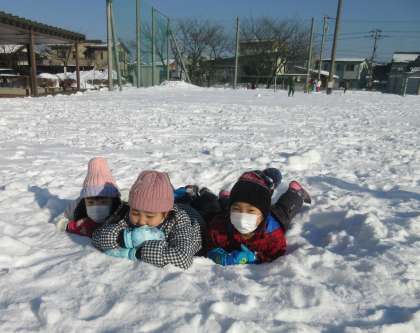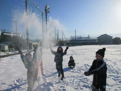 生活科の時間に雪遊びをしました。「雪のシャワーだよ!」「雪のベッドは気持ちいいな」と大喜びの子供たちでした。