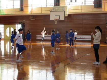 のびのびタイムとトレーニングタイムを使って、健康委員会主催でなわとび大会を行いました。今日は、中学年が自分の得意な技を紹介しました。ビデオに映る時間は一人10秒程ですが、みんな練習の成果を発揮していました。なわとび大会の様子は、後日、お昼に放送する予定です。