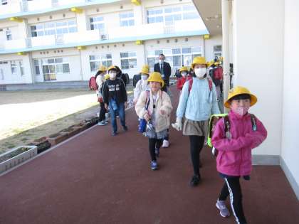 <集団下校> 今日はいい天気でした。 少し早く集団下校! 仲良く帰って行きました。