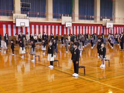 4月7日(水)令和3年度入学式を行いました。新1年生は、少し緊張気味でしたが、とてもよい姿勢で校長先生のお話を聞いたり、元気いっぱい返事をしたりすることができました。19名の1年生を迎え、157名の大成っ子がそろいました。