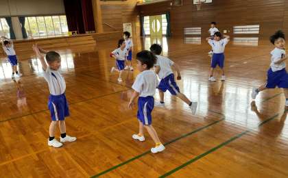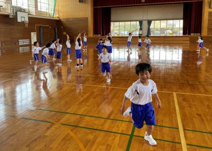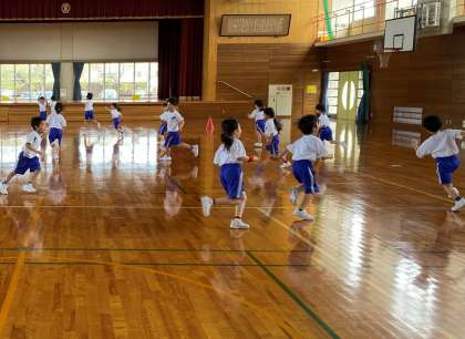 体育でバナナおにごっこをしました。汗だくになりながら体育館を走り回り、バナナになった友達をたくさん助けました。