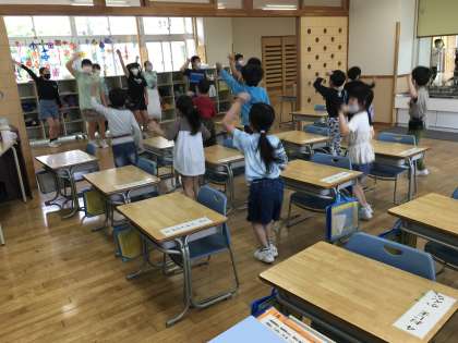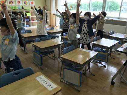 毎朝、6年生が1年生の教室に来て体操を教えにきてくれています。初めて練習した時よりもとても上手に体操することができるようになりました。