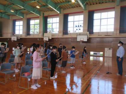 本日、水橋消防署の方よりBFCバッジを授与していただきました。「BFCの誓い」を6年生全員で言い、防火への意識を高めました。