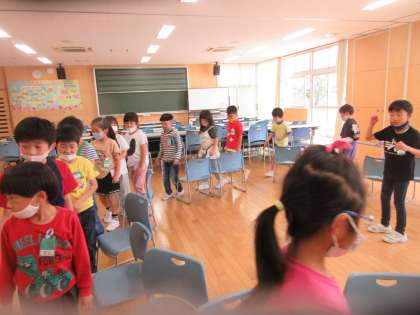 おめでとう係主催で、4,5月のお誕生日おめでとう集会が行われました。係の子供たちが、プレゼントを作ったり、ゲームを考えたりと、前から準備を進めてきました。本番では、プレゼントをもらい、誕生者の子供たちは笑顔いっぱい!いす取りゲームもみんなで楽しみ、2花みんな、よし!よしのひとときでした。