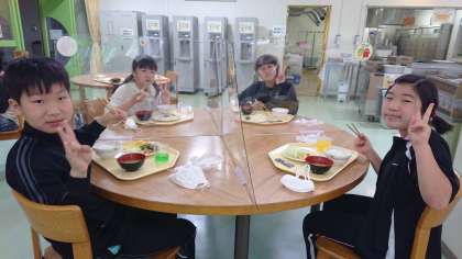 朝食です。朝から元気いっぱいです。