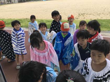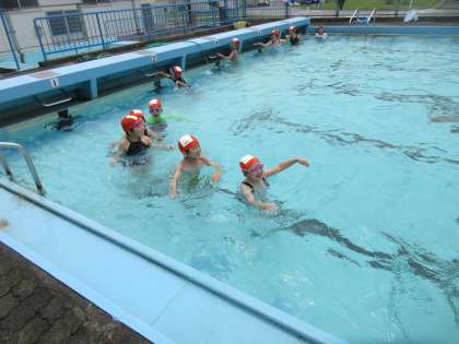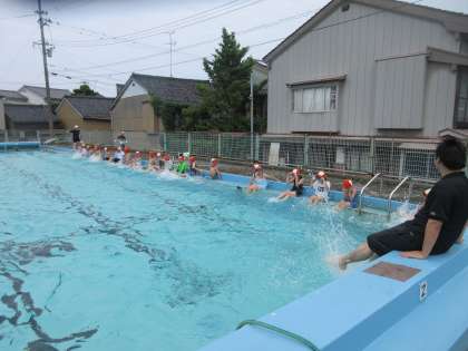 初めてプールに入りました。みんな笑顔で大興奮でした。