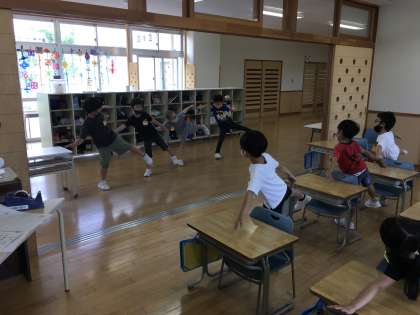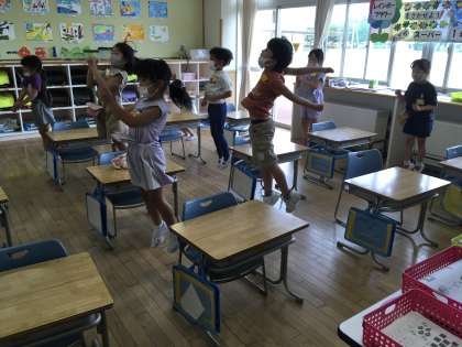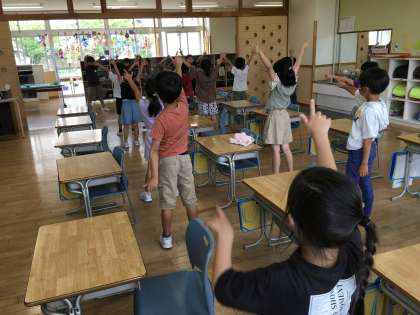 トレーニングタイムに体操係がお手本となって、「きときと夢体操」をしました。