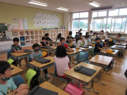 いよいよ初めてタブレットを家庭に持ち帰る日がやってきました。真新しいケースに入れて、みんな嬉しそうです。