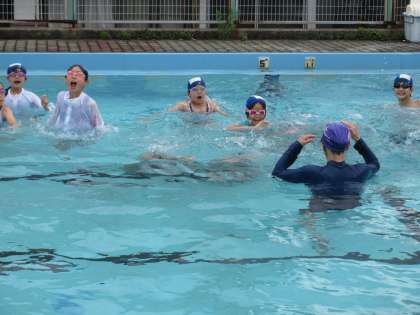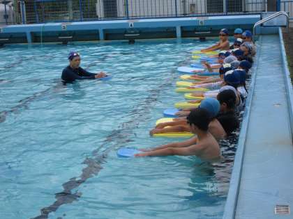 水泳教室がありました。講師の先生の指導のもと、めきめき上達していました。明日もがんばろう!!