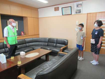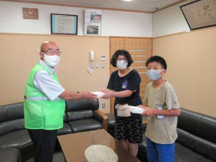 富山中央交通安全協会 水橋中部支部の高井様から、交通安全の暑中見舞いはがきを贈呈していただきました。6年生の代表児童が受け取り、お礼を伝えました。身近な人にはがきを書いて、交通安全を呼びかけます。