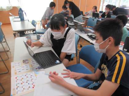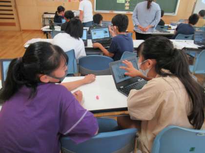 クロームブックを活用し、外国の有名な食べ物や観光地等を調べました。子供たちは、きれいな景色やおいしそうな食べ物を見つけ、「行ってみたい!」「食べてみたい!」と話しながら楽しく学習していました。