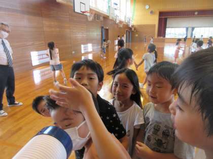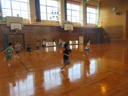 木曜日のいきいきタイムは、低学年にとって、今学期最後の体育館使用日でした。ミニゲーム係さんの呼びかけで、みんなでおにごっこをしました。みんな思いっきり駆け回り、時には体育館に設置された冷風扇で一休みしていました。