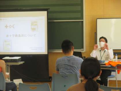大成育友会の保健体育委員会主催で、心肺蘇生法講習会が行われました。日本赤十字社富山県支部の指導員からお話を聞いたり、ペットボトルを使って胸部圧迫の体験をしたりしました。親子で参加されたみなさん、お疲れ様でした!!