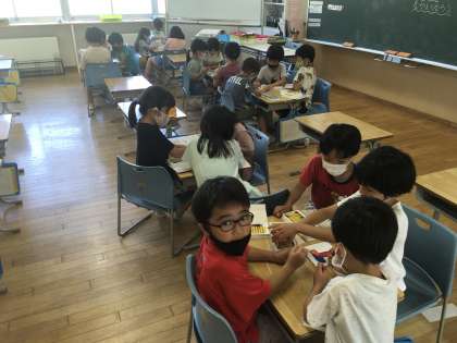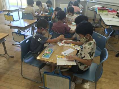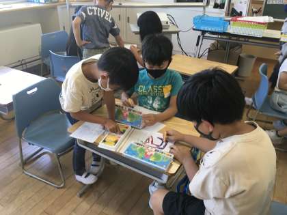 お楽しみ会で工作をしました。みんなで協力して素敵な看板ができあがりました。