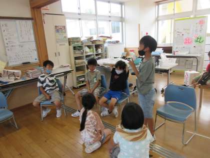 今日の最後は、「1学期がんばったこと発表」でした。インタビュー担当者が、手作りマイクで全員に発表してもらいました。自分の成長、クラスとしての進歩、2学期がんばりたいこと等、それぞれが充実感や達成感を味わい、学期末を迎えたことが伝わってきました。明日は、終業式。残りのプログラムの歌を歌って、みんな夏休みに突入です。