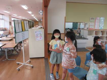 今日の最後は、「1学期がんばったこと発表」でした。インタビュー担当者が、手作りマイクで全員に発表してもらいました。自分の成長、クラスとしての進歩、2学期がんばりたいこと等、それぞれが充実感や達成感を味わい、学期末を迎えたことが伝わってきました。明日は、終業式。残りのプログラムの歌を歌って、みんな夏休みに突入です。