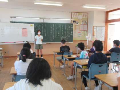 その後、夏休みにがんばったことや思い出を一人一人が発表しました。この長い休みにしかできない様々な体験を聞き合い、楽しい時間を過ごすことができました。