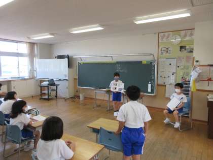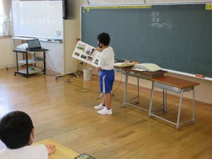 昨日に続いて、「一人一研究」の発表会をしました。山の植物を調べたことや石けんを作ってみたことなど、子供たちは自分たちの研究成果を発表しました。発表を聞いている子供たちも興味津々で、たくさん質問していました。