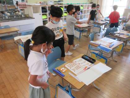 10より大きい数について勉強しています。10のまとまりを一生懸命探しました。
