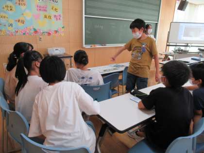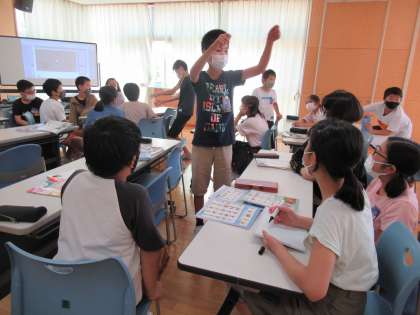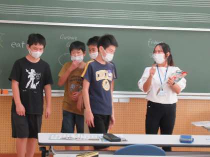 グループ毎にジェスチャーゲームをしながら、「running」「fishing」等の動きを学習しました。みんな笑顔で、楽しく活動していました。
