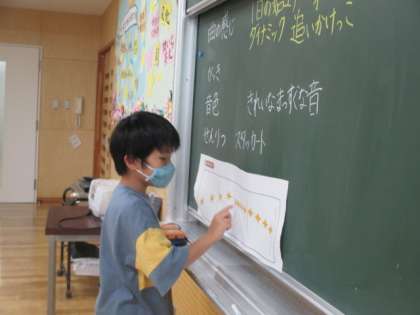 音楽科は、鑑賞の学習を進めています。今日は、いろいろな金管楽器について知ったり、「トランペット吹きの休日」と「アレグロ」を聴き比べたりしました。教科書に載っている絵譜を指さしながら聴くことに興味をもち、何度も聴く中で、音色や旋律の違いが感じの違いを生み出していることに気付きました。