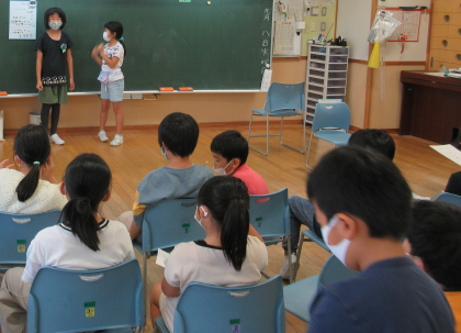 学活の時間にお楽しみ会を開きました。ジェスチャーゲームや誕生日のお祝いなど楽しく活動しました。