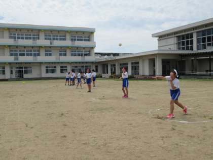 校内チャレンジ陸上記録会では、50M走、ソフトボール投げ、走り幅跳びの三種目に挑戦します。今日は、ソフトボール投げの練習をしました。少しでも記録を伸ばそうと頑張っていました。