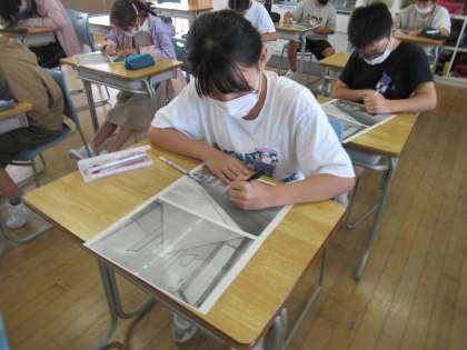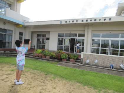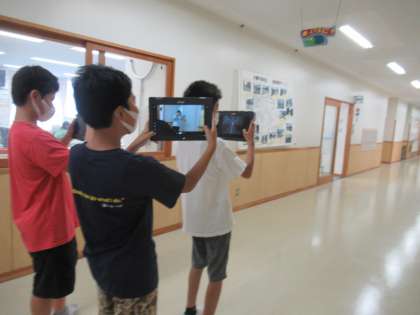 図工では、6年間の思い出がつまった校舎を描きます。今日は、遠近法を学習した後、自分が思い出に残したい場所をクロームブックで写真に撮りました。どの場所を絵に表そうかと考えながら、楽しく活動しました。