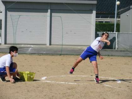今日は、ソフトボール投げを行いました。これまでの記録を少しでものばそうと、投げ方に気を付けていました。友達のがんばりを応援する姿もたくさん見られました。