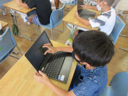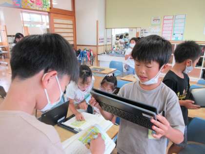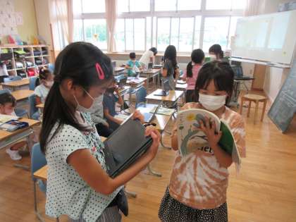 タブレットの画像にある地図を見て、目的地までの道案内を考え説明する学習をしました。クイズ形式で道案内の説明を行い、それを聞いた相手が案内通りに目的地にたどり着けば説明は大成功という活動をしました。みんな、分かりやすく説明しようとがんばりました。