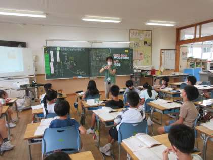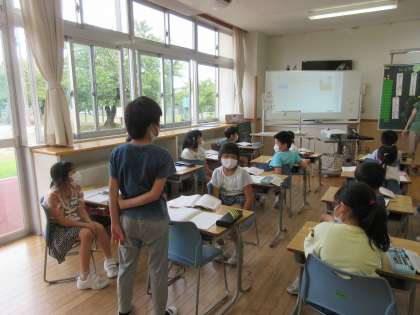 算数科で文章問題を行った際、代金やおつりについて改めて考えました。まだまだ買い物の経験の少ない子供たちにとって、代金どおりの小銭がない場合、少し多めの硬貨やお札を渡しておつりをもらうという生活の知恵を互いに説明し合い、理解しました。子供たちは分かった満足感に喜びいっぱいでした。生活に繋がる算数って,本当に大切ですね。