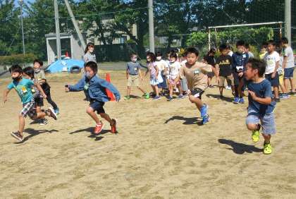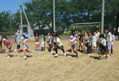 今日は晴天の空の下、久しぶりにグラウンドでかけっこのトレーニングタイムを行いました。子供たちは、思いっきり走って汗だくでしたが、「楽しかった!」と喜んでいました。
