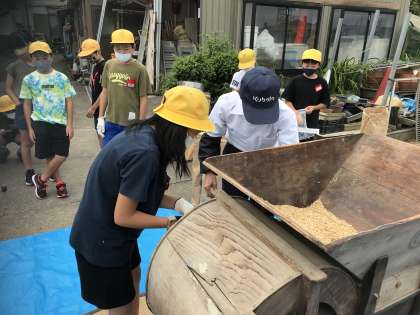 体験後は、「きれいに脱穀できて嬉しかった」「農家の方は時間や手間をかけ、大変な作業をしてくださっているので、米を大切に食べたい」「昔の機械もとても工夫されている」と、感激していました。
