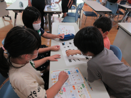 外国語の時間にすごろくのゲームをしました。楽しみながら外国語の学びを深めることができました。