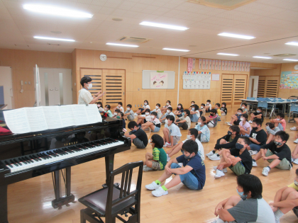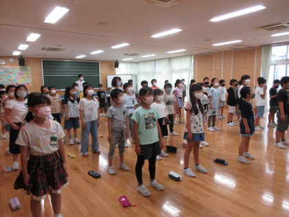 3・4年生合同で「こころ天気になあれ」の合唱練習をしました。2学期になって初めての合同練習でしたが、子供たちは夏休み中や授業での練習成果を生かして、心を合わせて、きれいな歌声を響かせていました。