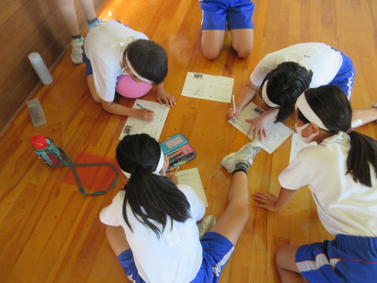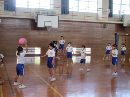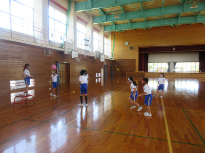 体育の時間にポートボールをしました。それぞれのチームでメンバーと作戦を考え、試合に臨みました。ドリブルでどんどん進んだり、仲間にパスしたり、相手のボールをブロックしたり、活発に活動しました。