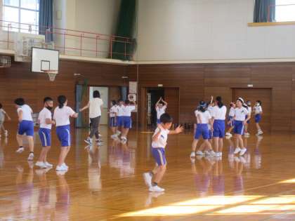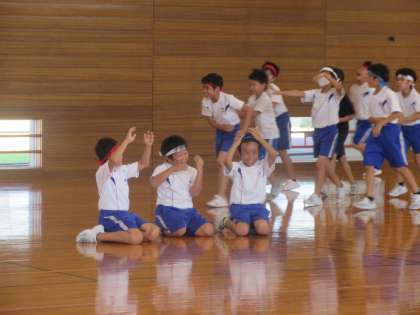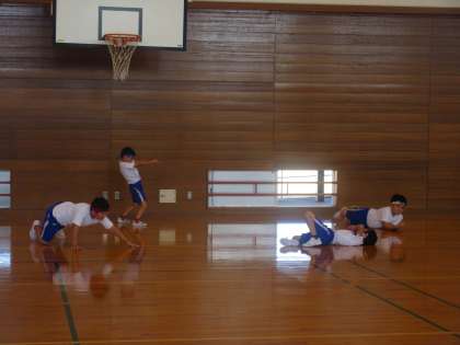 今日はリズムに合わせながら、ジャングルで起こるいろいろな出来事を表現しました。吊り橋を渡ったり、沼にはまったりしています。